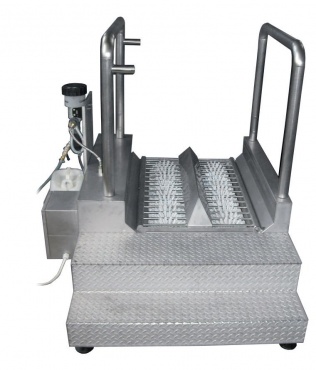 Автоматическая санитарная обработка подошв производственной обуви.