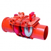 Две самозакрывающиеся заслонки, одна из которых может быть заблокирована вручную в качестве аварийного затвора. Ввод/отвод для подключения труб HT в соответствие с ЕN 1451-1.