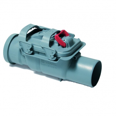 Две самозакрывающиеся заслонки, одна из которых может быть заблокирована вручную в качестве аварийного затвора. Ввод/отвод для подключения труб HT в соответствие с ЕN 1451-1.