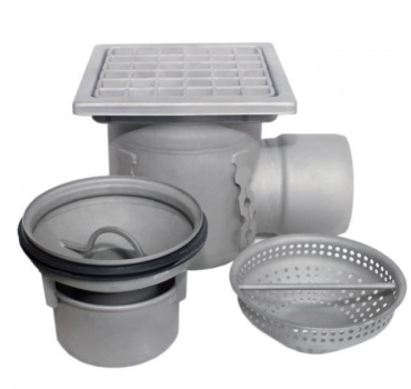 Трап стандартно поставляется в комплекте с гидрозатвором, улавливателем механических примесей и решеткой ячеистой толщиной 3мм. Возможные варианты решеток: ячеистая 4 мм, лестница или лестница усиленная, 3мм, 4мм или 6мм.