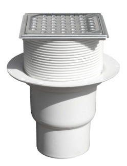 Специальный трап из пластмассы для кафельного пола с диаметром входа 150 мм.