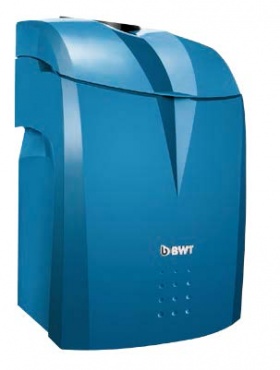 Установка имеет два натрий-катионитовых фильтра, умягчающих воду попеременно, причем управление каждым из фильтров осуществляется микропроцессором отдельно. Все стадии работы умягчителя отражаются на жидкокристаллическом дисплее. Установка имеет высокоэффективное устройство гигиенической защиты, которое во время каждой регенерации дезинфицирует ионообменную смолу.